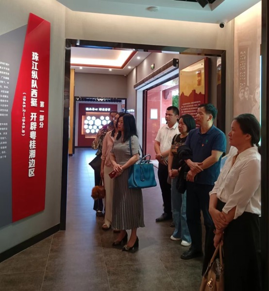 上午,学院一行先后参观了中国人民解放军粤桂湘边纵队纪念馆、周其鉴故居。在讲解员的带领下,同志们怀着崇敬的心情参观了粤桂湘边纵队纪念馆展区,认真聆听着讲解员对“陈列珠江纵队西挺开辟粤桂湘边区”等七个部分的讲解,通过历史照片、文物雕塑、绘画、模型、场景和多媒体演示、电视专题片等形式,形象深入地了解粤桂湘边纵队艰苦卓绝的战斗历程和为中国人民解放事业创立的光辉业绩。