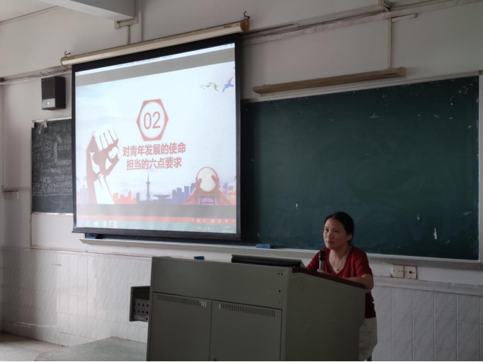 伴随着同学们热烈的掌声,大会正式开始,刘薇书记以“新时代青年发展的使命担当”为主题为我们授课。首先,刘薇书记为我们讲解了《习近平谈治国理政》第三卷,该书收入了习近平总书记在2017年10月18日至2020年1月13日期间的报告、讲话、谈话、演讲、批示、指示、贺信等92篇,并分为19个专题。同时,刘书记要求我们一定要认真学习这一本书,理解里面的内容。接着,刘薇书记又为我们讲解了对青年发展的使命担当的六点要求: